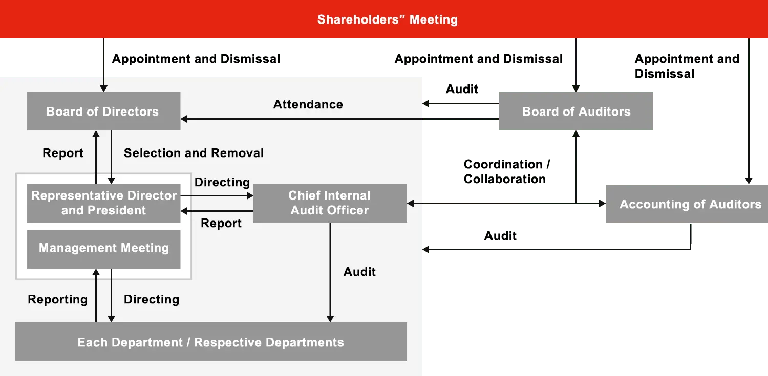 We believe that strengthening corporate governance is indispensable for sustainable earnings growth and maximization of corporate value, and we are striving to maintain and strengthen corporate governance by establishing and thoroughly operating an internal control system based on the “Basic Policy on Internal Control System” established by the Board of Directors as described below.